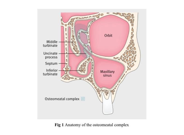 به نظر می رسد عامل تحریک کننده در سینوزیت حاد انسداد دهانه سینوس است، به طور معمول دهانه سینوس ماگزیلاری در زیر توربین میانی است (شکل ۱).